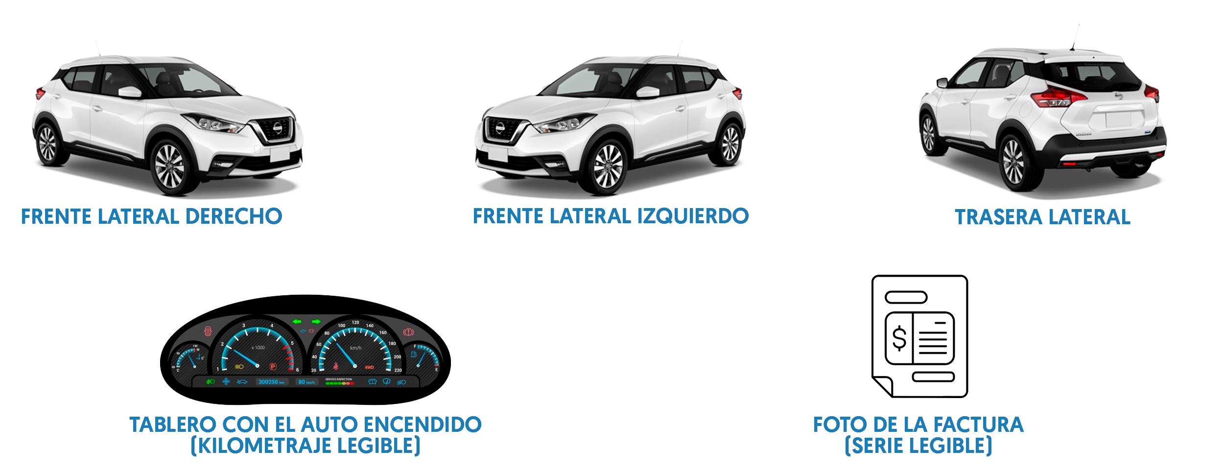Envíanos las fotos y datos de tu auto y en menos de 24 horas recibirás una oferta tentativa de su valor. Necesitamos las siguientes fotos: